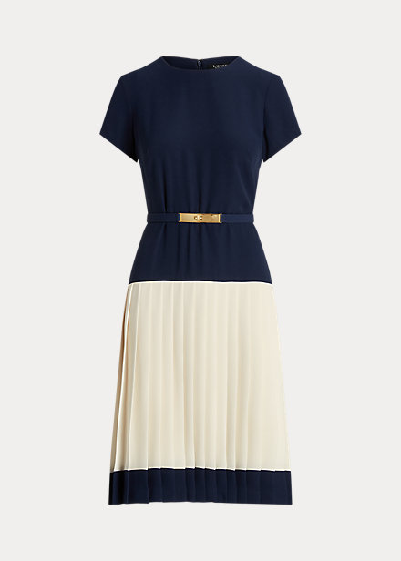 Two-Tone Belted Georgette Dress
