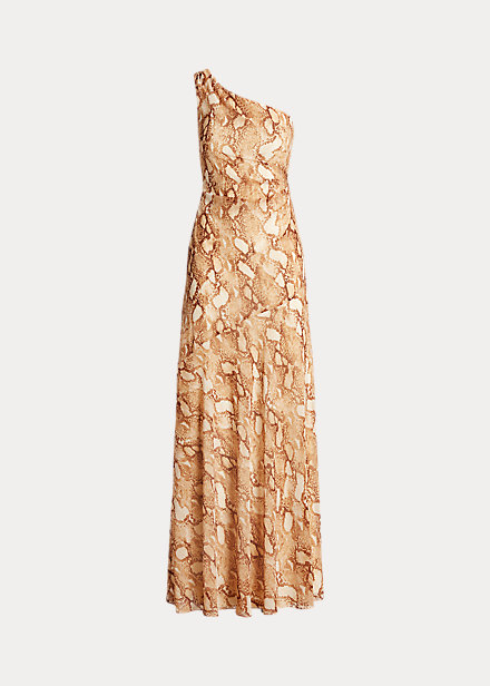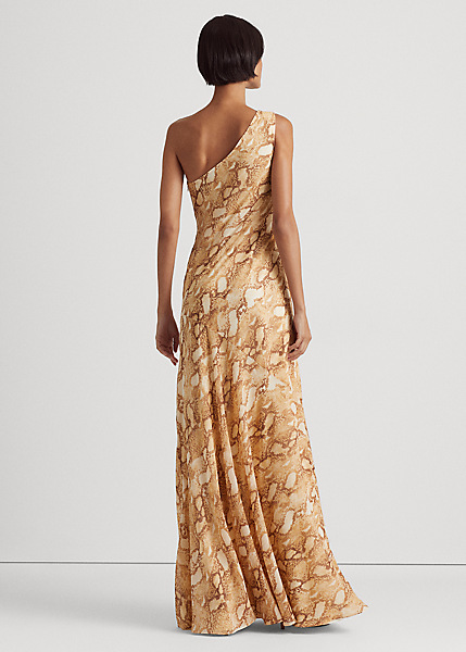 Print Georgette One-Shoulder Gown